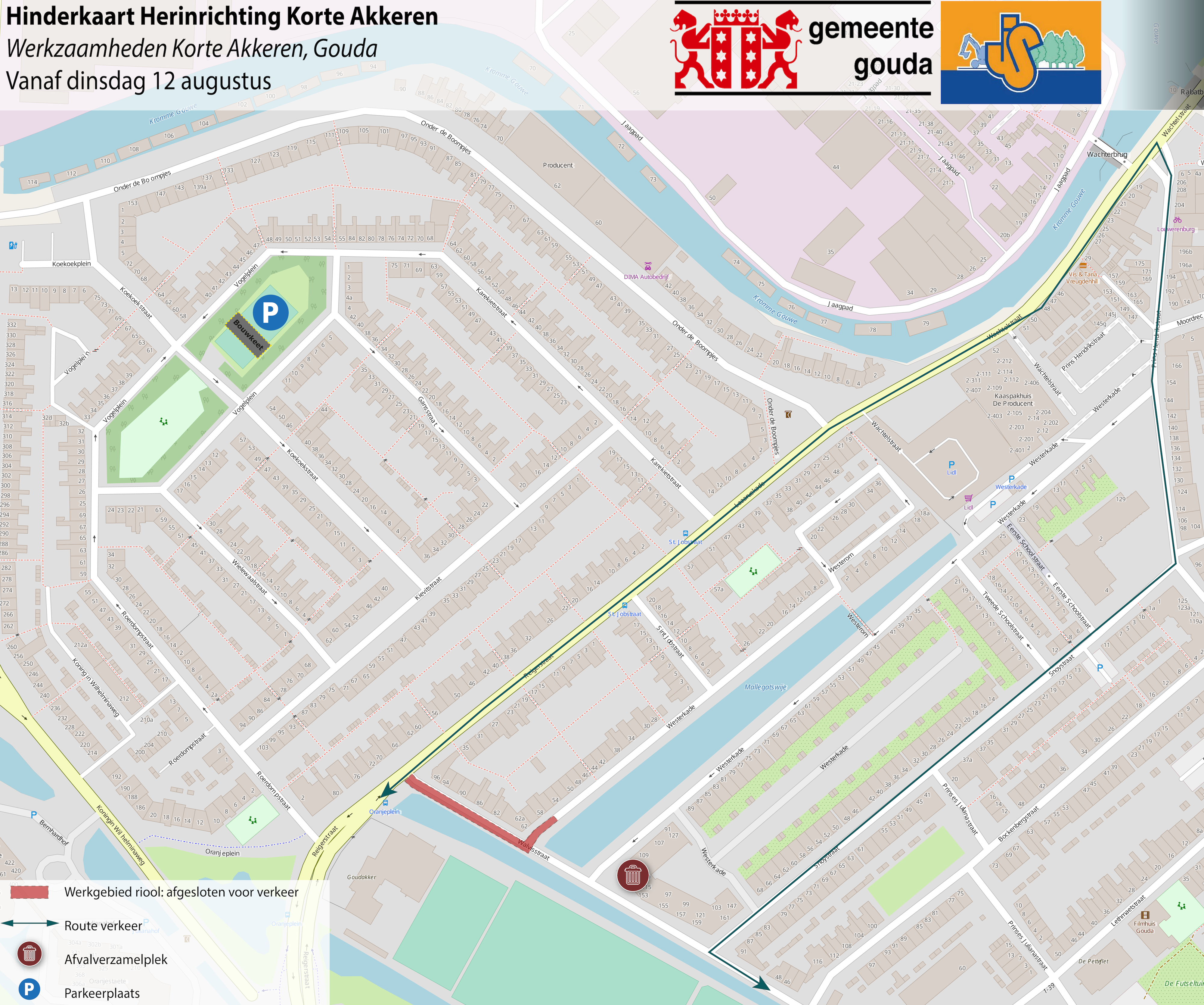 Vanaf dinsdag 12 augustus breken wij de Walvisstraat voor de woningen vanaf kruispunt Westerkade t/m Walvisstraat huisnummer 94 de straat op. Wij starten met het verwijderen van het oude straatwerk. Daarna vervangen wij het riool voor de afvoer van het regenwater en richten wij de straat opnieuw in. De werkzaamheden duren naar verwachting 4 weken.