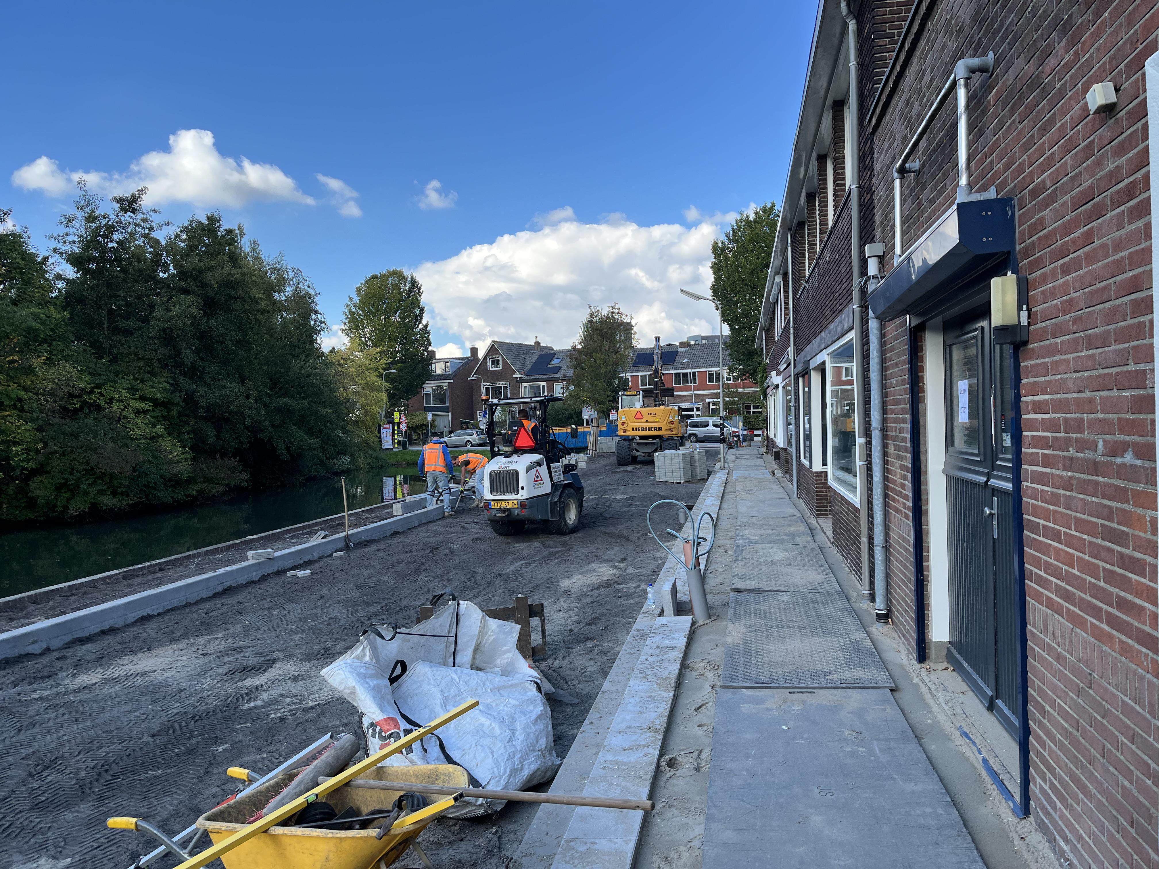 Onze straatwerkzaamheden in de Westerkade zijn nog in volle gang! Zoals te zien is op de foto’s plaatsen wij eerst de banden, ook wel stoepranden genoemd. Op deze manier werken we van buiten naar binnen, en geeft dit ons het kader voor het aanhouden van de juiste hoogte. Daarna brengen wij de stoepen, parkeervakken en uiteindelijk de rijbaan aan.